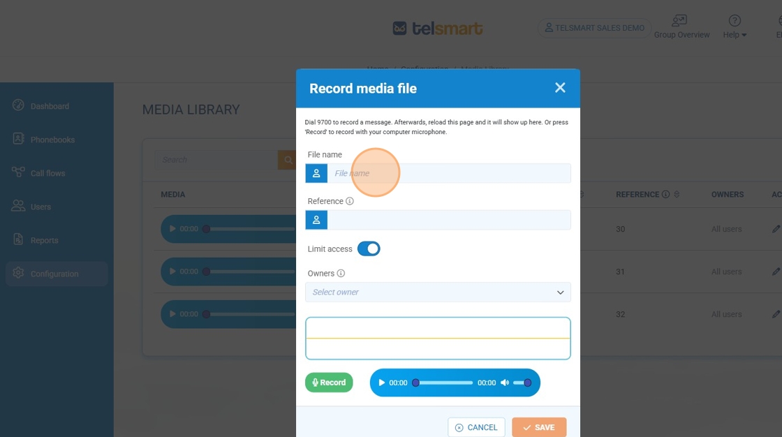 Follow the steps below to record a new audio message in the MyTelSmart portal