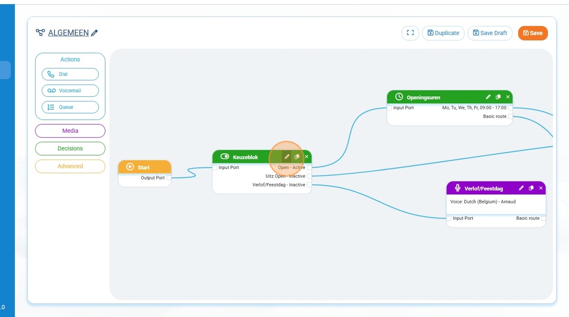 Step 2: We click on the little pencil net to the callflow we want to adjust