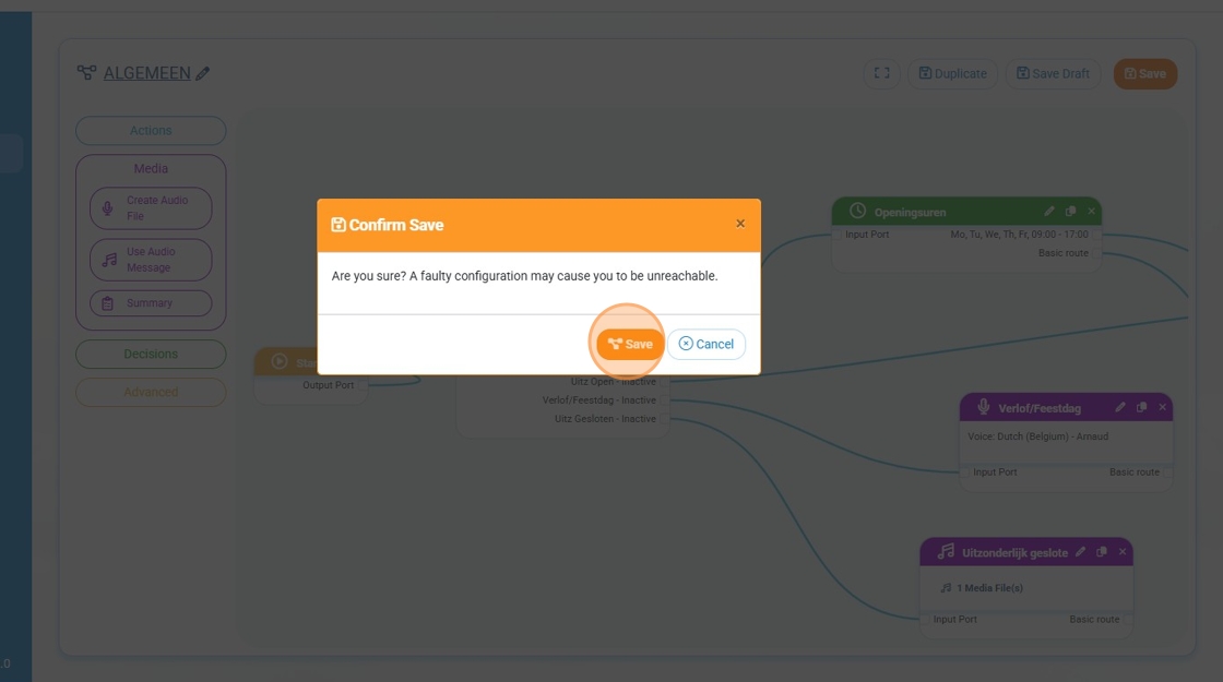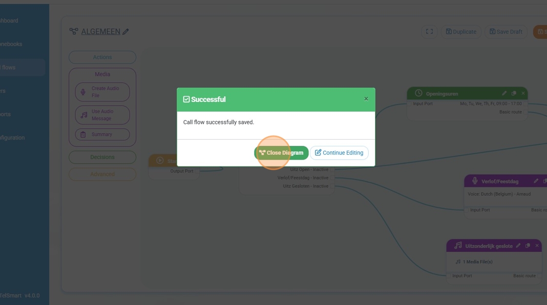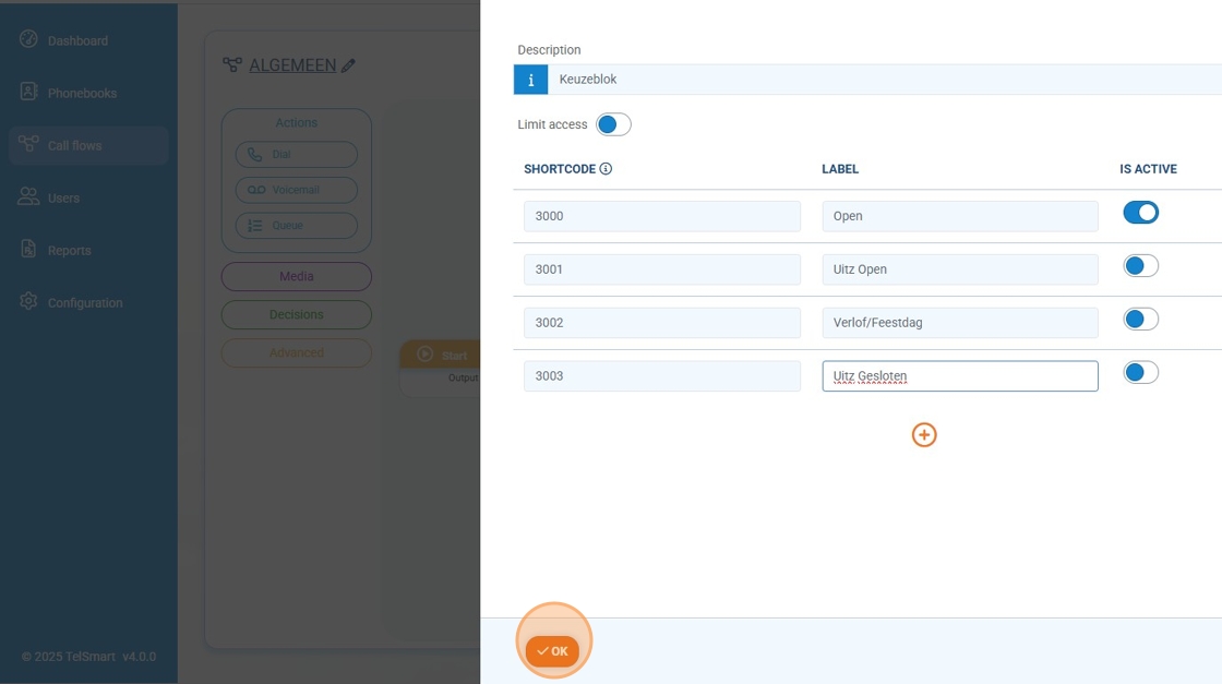 Step 5: We click "OK" (this will take us back to the callflow)
