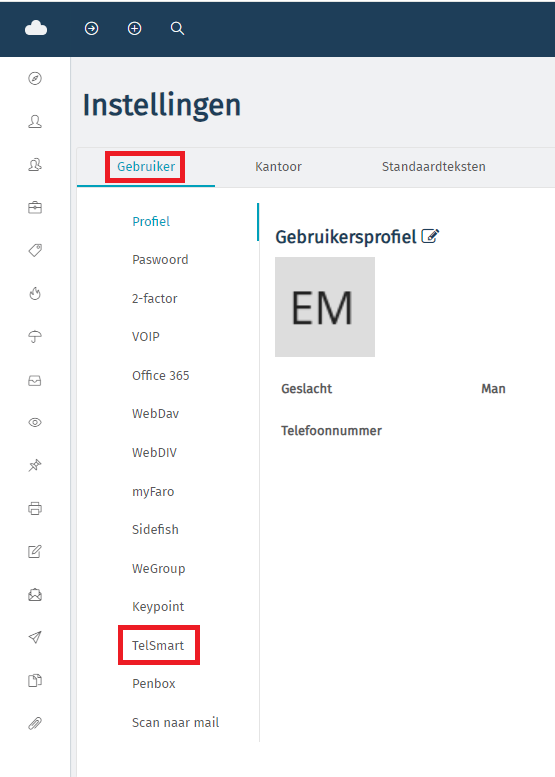 Step 3: Under settings, under the user tab, choose TelSmart.