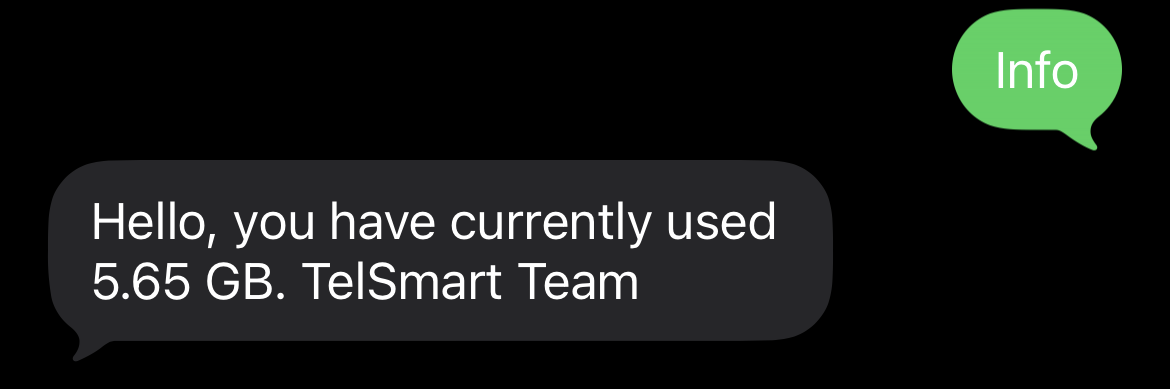 Check data consumption Requesting usage during the current billing period. Send an SMS with the text INFO to 1966.