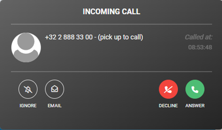 Step 3: If you are logged in with Flexy Desktop or Flexy Mobile, you will see the pop-up below appear. This pop-up states pick up to call.