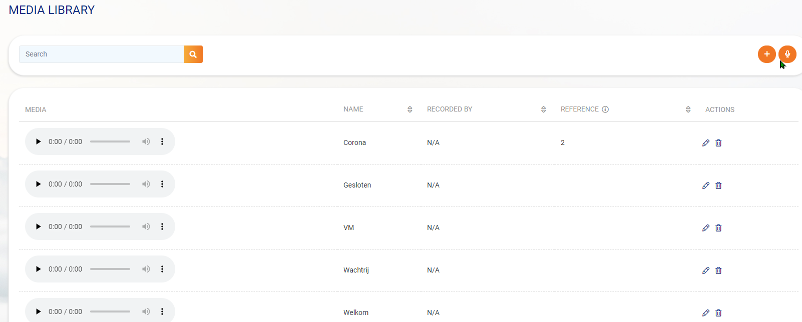 If there are no audio files in the media library yet, you can call 9700 and leave a message via a landline phone, after recording this message it will automatically be saved in the media library with the title: date + extension.