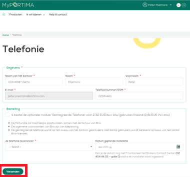 A pop-up window will appear, complete the details of your office here and then check the order. Enter the name of your telephony supplier and, if already known, the installation date.
