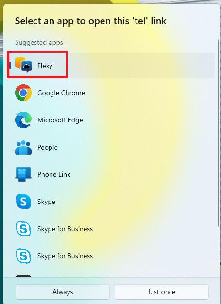 Étape 3 : Choisissez maintenant l'application Flexy ici, puis notre application Flexy Desktop s'ouvrira et vous pourrez passer votre appel ici.
