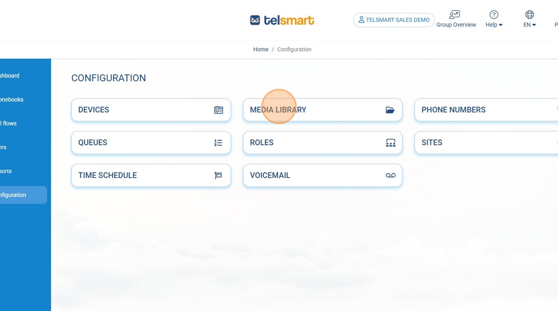 Étape 1 : Connectez-vous au portail (https://portal.telsmart.eu) et choisissez Configuration dans le menu à gauche.
