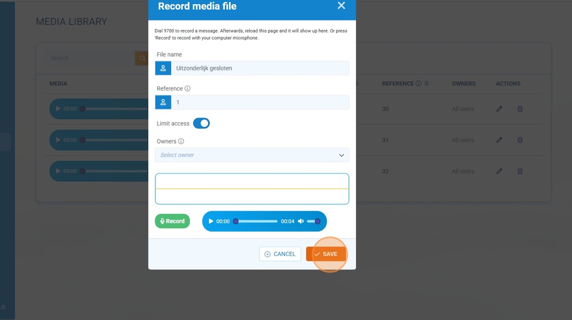 BONUS Étape 8 : Si, plus tard, vous souhaitez modifier le fichier audio, vous pouvez composer le 9700#1 (le “1” correspond à la référence que nous avons ajoutée ci-dessus).