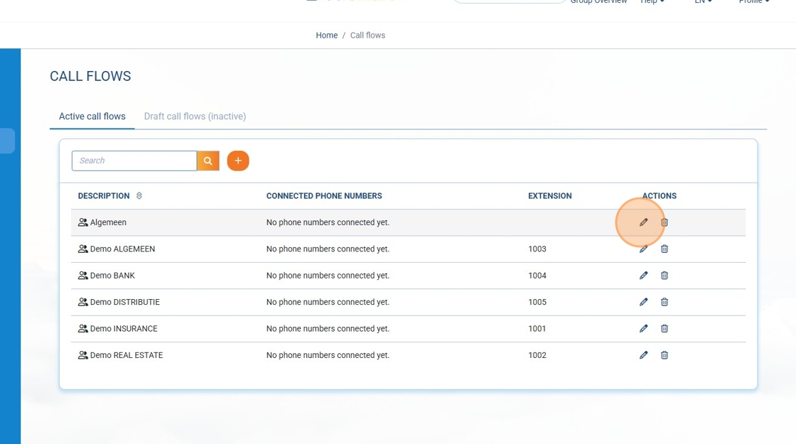 Étape 2 : Cliquez sur le petit crayon à côté du flux d’appels que vous souhaitez modifier.