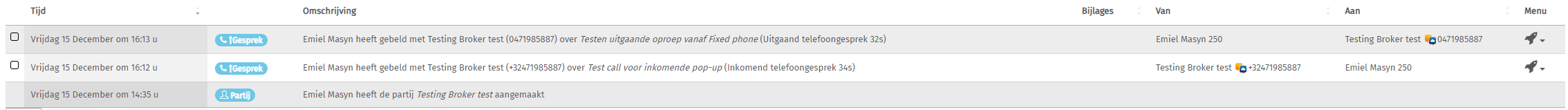 Il est donc possible de faire apparaître un pop-up dans le portail Brokercloud via n'importe quel outil TelSmart. Que vous appeliez de votre téléphone fixe, de Flexy Mobile ou de Flexy desktop. Le pop-up d'un appel entrant sera toujours visible dans le portail.