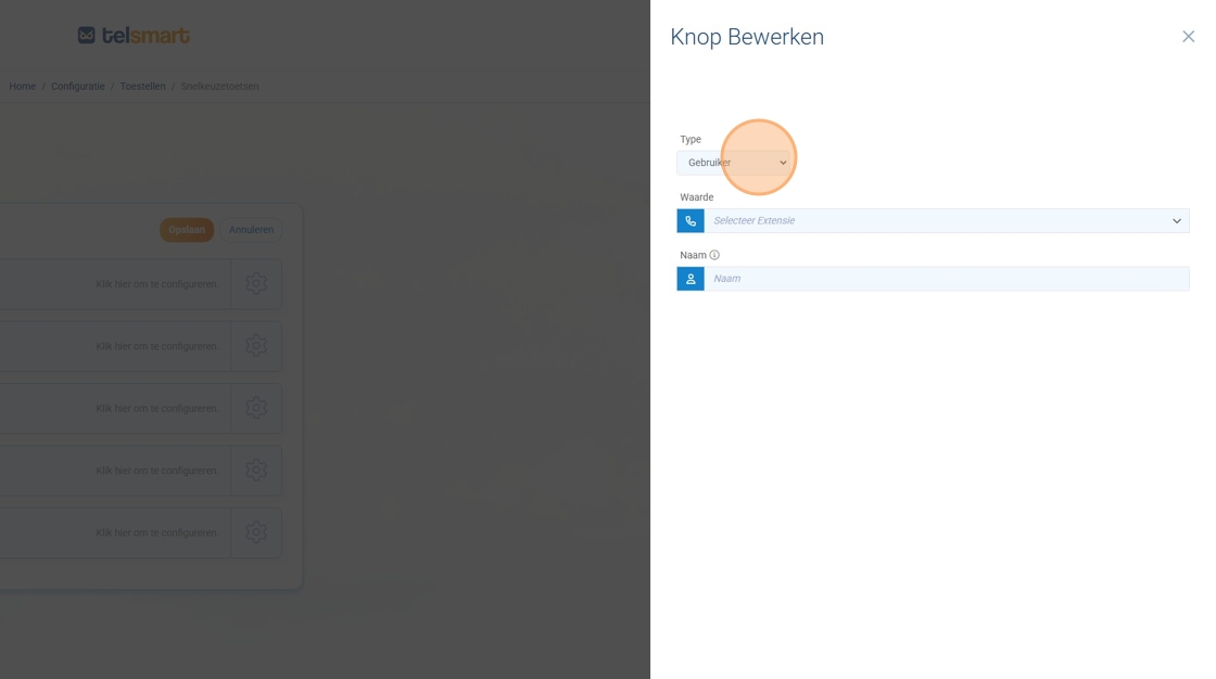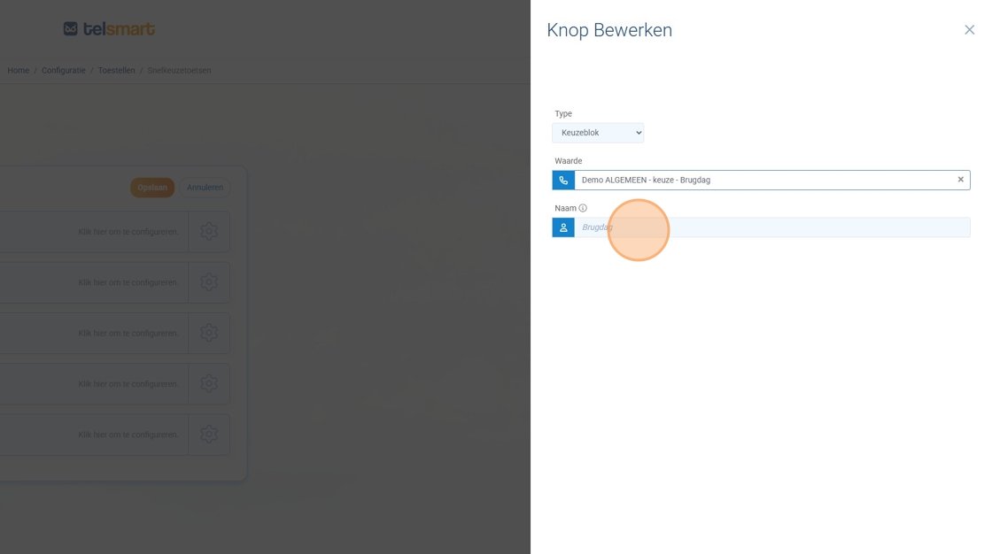 14. Choisissez par exemple le type « Bloc de sélection » (touche intelligente dans le processus d’appel).