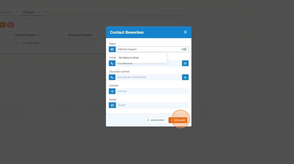 9. Saisissez le numéro de téléphone de votre contact dans le second champ « Numéro principal ».