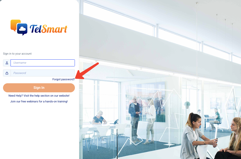 Allez sur https://portal.telsmart.eu et choisissez « Mot de passe oublié »