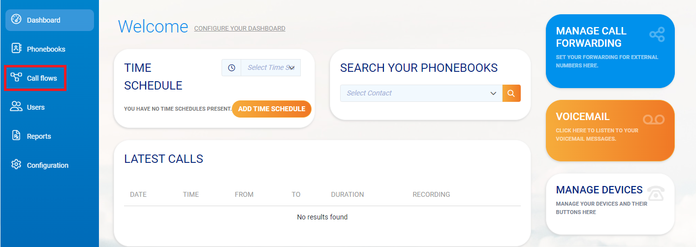Stap 1: Navigeer in het linker zijmenu naar Callflows/Belprocessen.