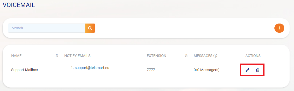 Stap 3: Klik op het + icoon om een Voicemail te gaan toevoegen.