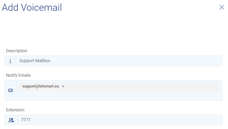 Stap 4: Vul onderstaande velden verder aan. De omschrijving van de Voicemail, Welk email adres mag de notificaties ontvangen en Extension. Extension is een nummer dat je vrij mag kiezen in de (7xxx reeks).