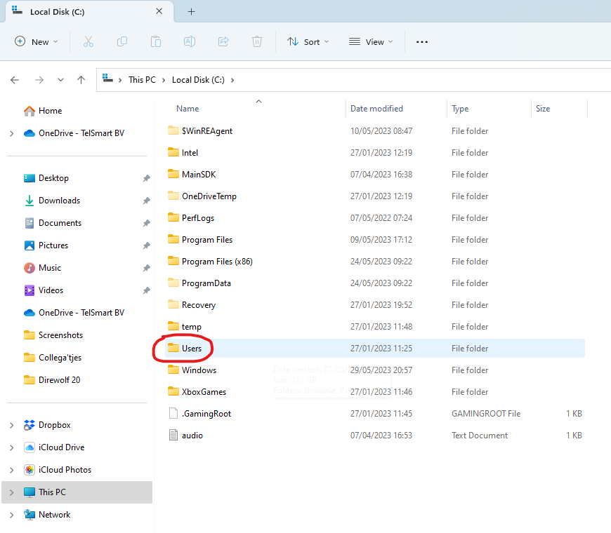 Stap 2: Eenmaal in de C schijf kies je voor de folder Users/gebruikers.