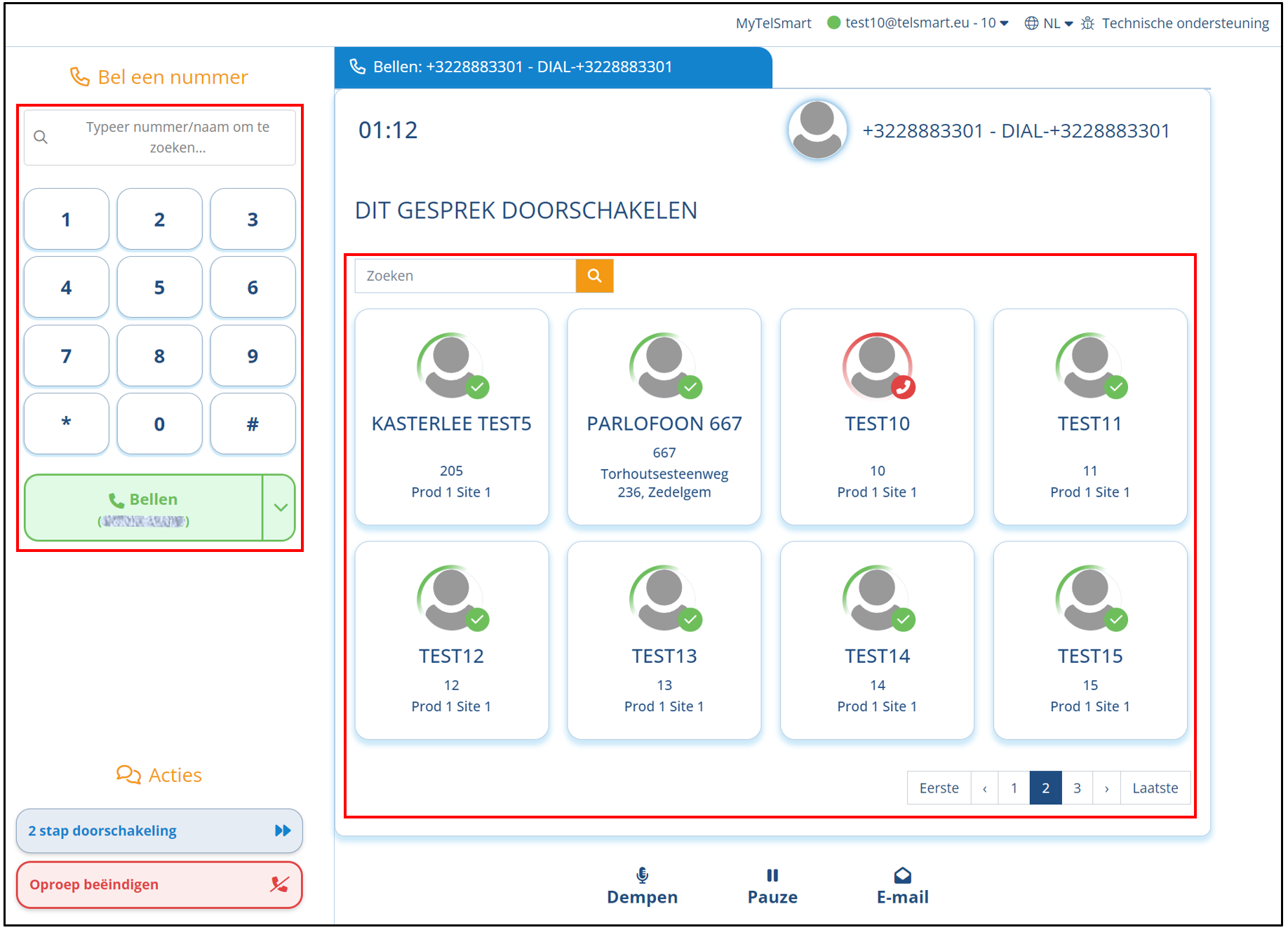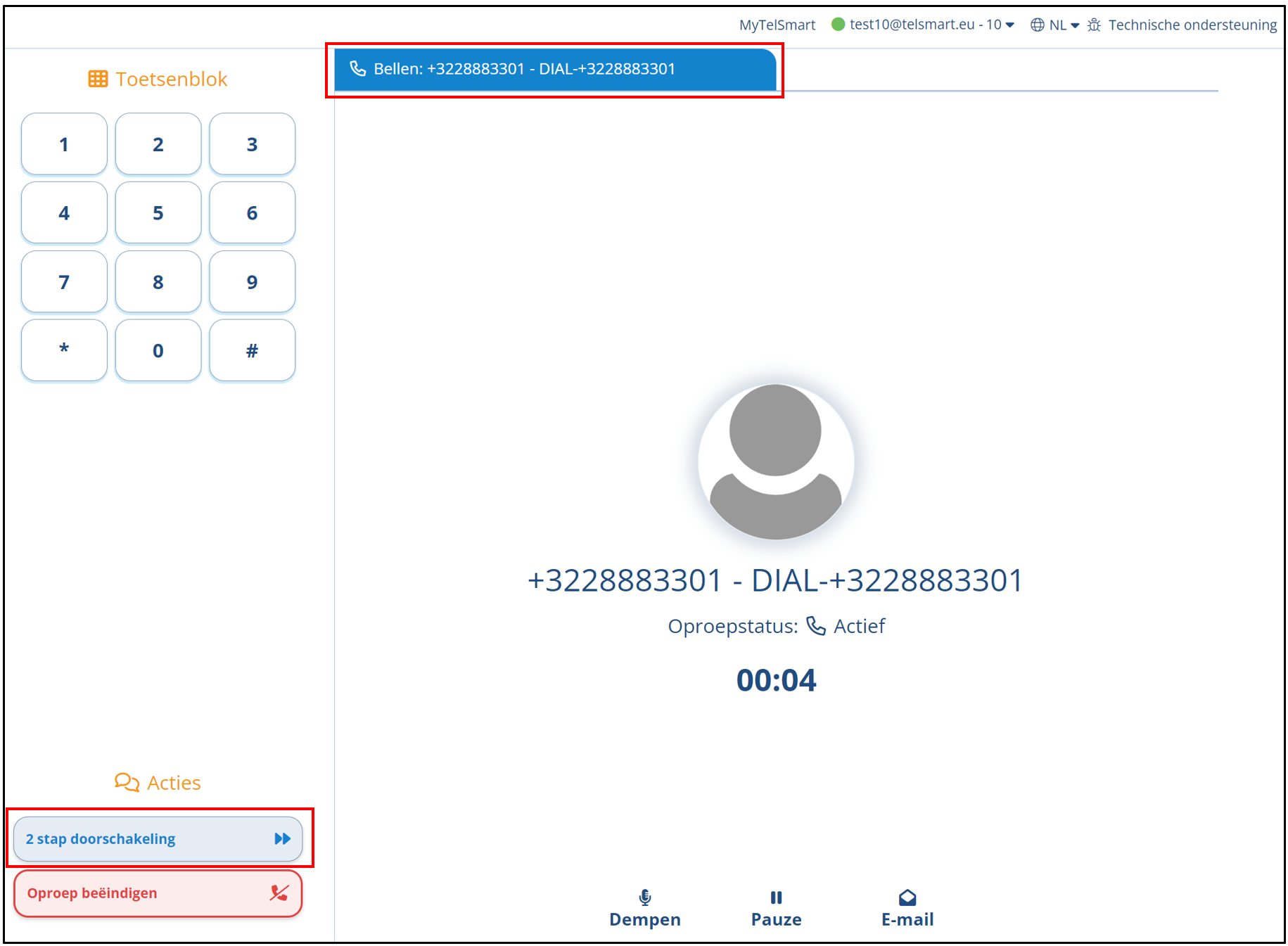 Onderaan kan je klikken op 2 stap doorschakeling om een doorschakeling te starten.