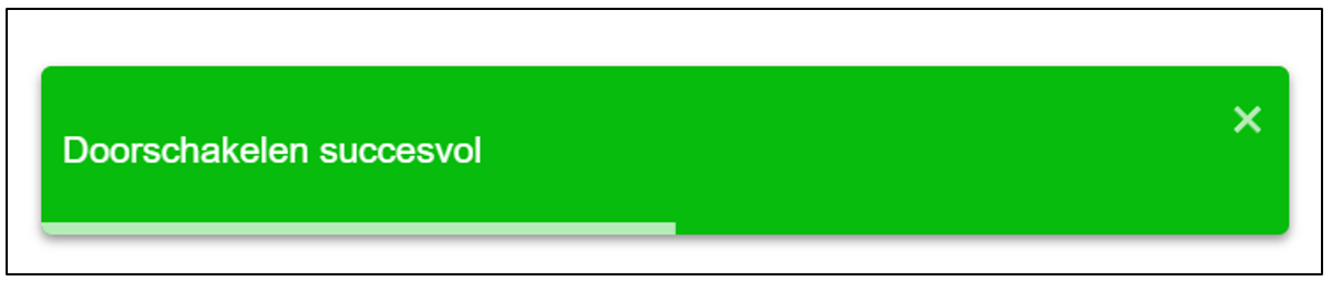 Nadat de doorschakeling uiteindelijk werd uitgevoerd, verschijnt onderaan rechts een info banner om aan te tonen dat de doorschakeling succesvol werd uitgevoerd.