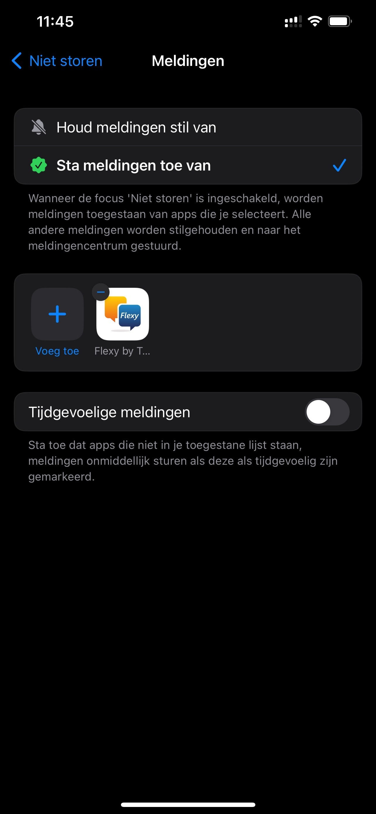 Om er zeker van te zijn dat alle meldingen en oproepen kunnen verwerkt worden van Flexy mobile op jouw smartphone, zijn er hieronder een aantal stappen uitgelegd die ervoor zorgen dat ook de meldingen van Flexy Mobile toegestaan worden in de verschillende Focus statussen