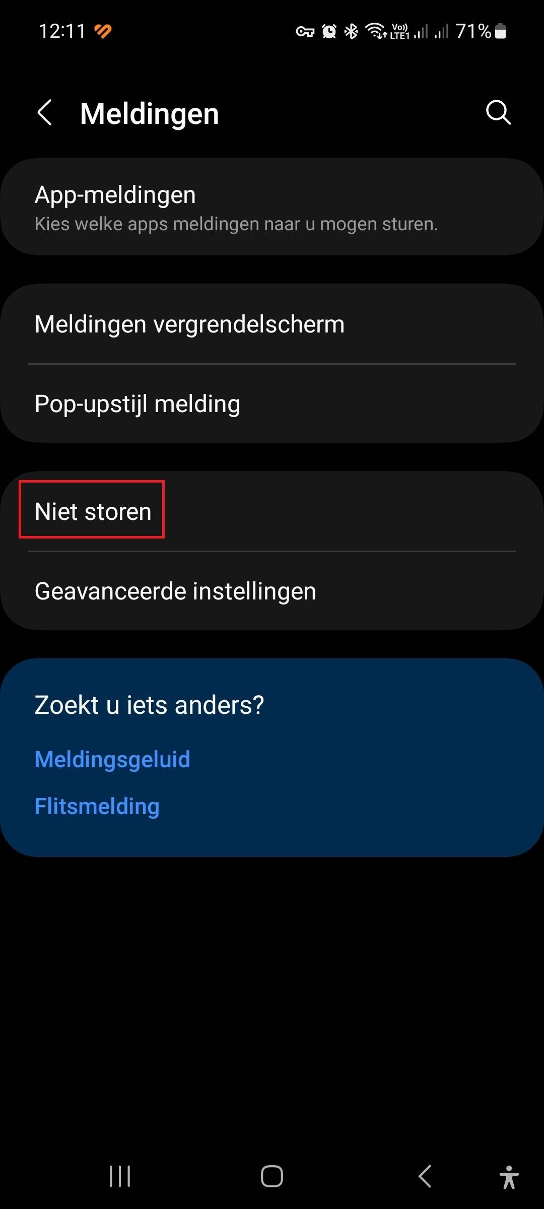 Op Android is er 1 standaard focusmelding voorzien genaamd Niet Storen.
