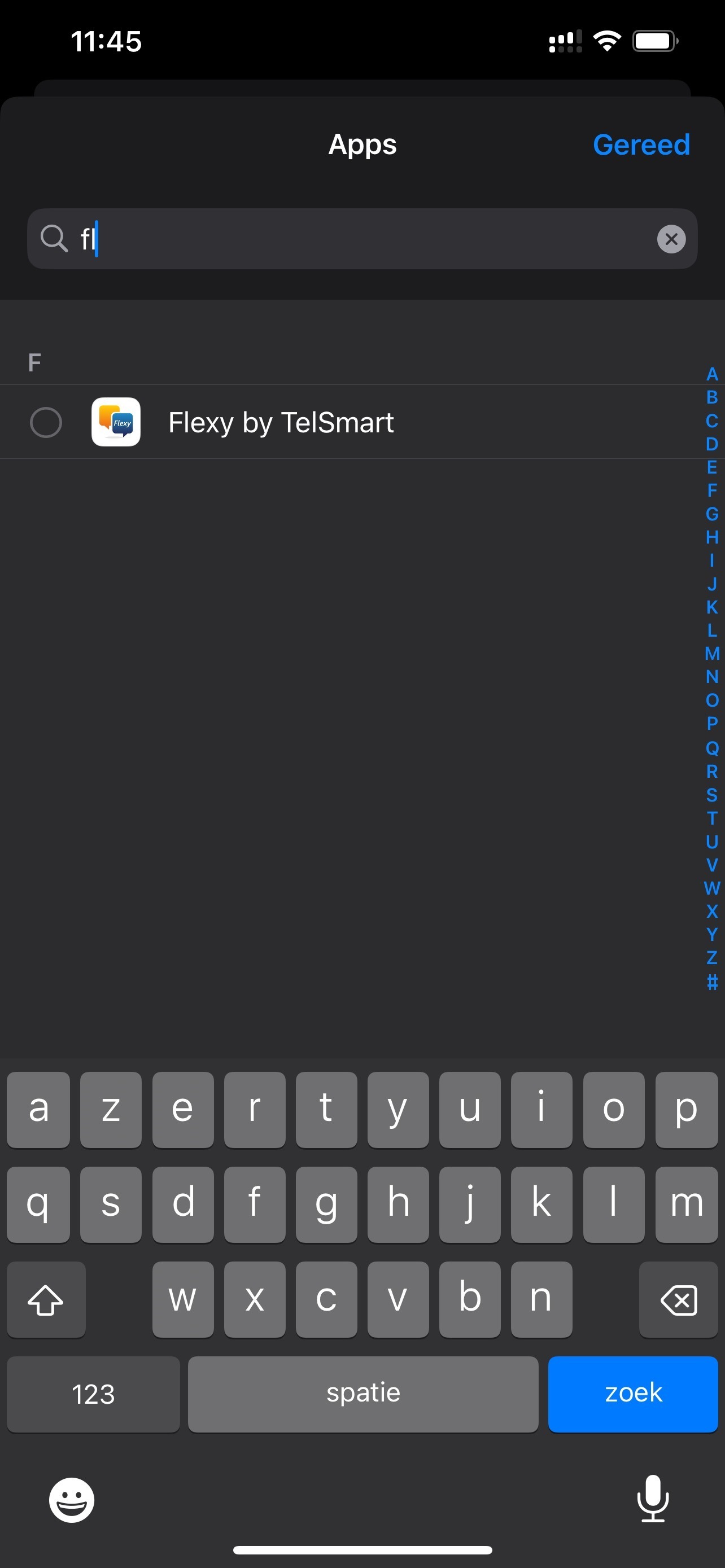 Stap 7: Na het klikken op het + teken krijg je een aantal veelgebruikte Apps voorgesteld maar kan je alsnog zoeken naar een App die je wil toevoegen. Zoek naar Flexy by TelSmart en klik deze aan.