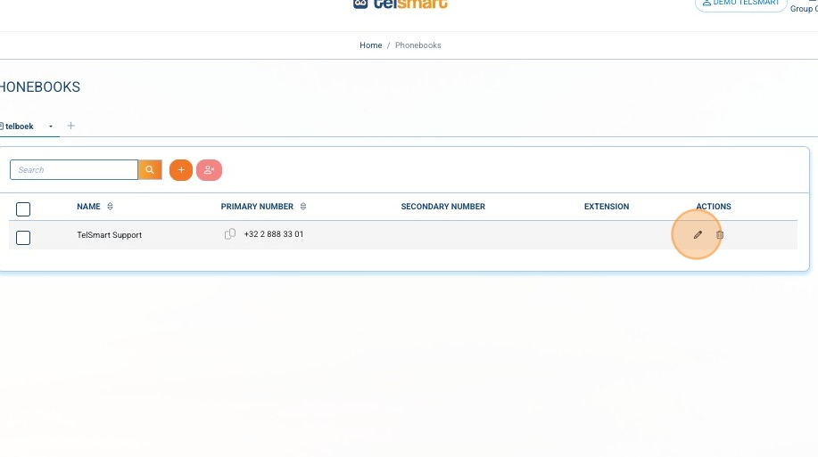3. Klik op het potlood-icoon naast het telefoonnummer dat je wil wijzigen.