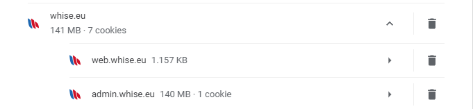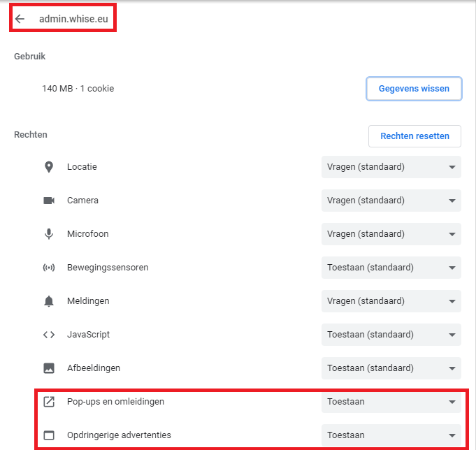 Stap 7: Je klikt op de 1ste web.whise.eu, hier zorg je ervoor dat volgende pop-ups toegestaan worden.