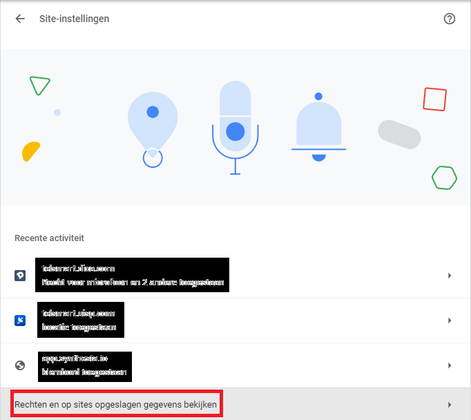 Stap 5: Kies voor Rechten en op sites opgeslagen gegevens bekijken