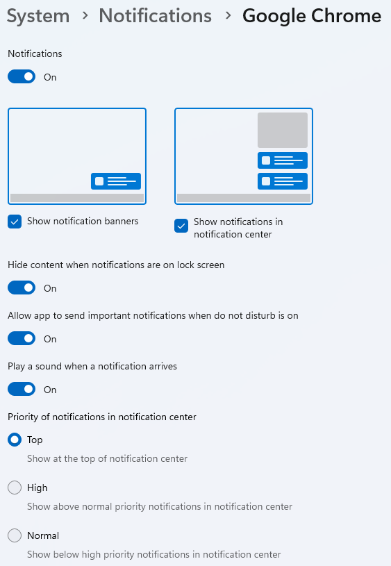 We dienen er bijkomend ook nog voor te zorgen dat de meldingen/notificaties van Google Chrome toegestaan worden op de computer. Als de computer deze tegenhoud, zal google chrome ook niet in de mogelijkheid zijn om deze pop-up meldingen weer te geven. Hieronder ook de stappen die je kan nemen om deze instellingen te controleren.