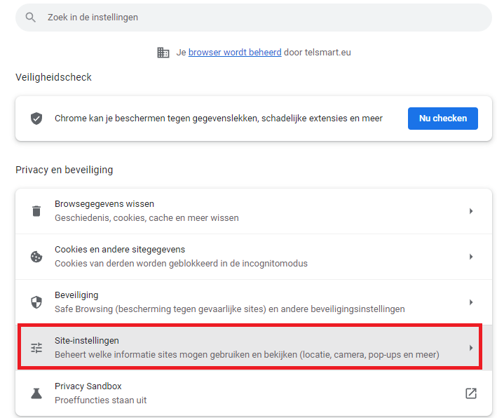 Stap 4: Kies hier voor Site-instellingen
