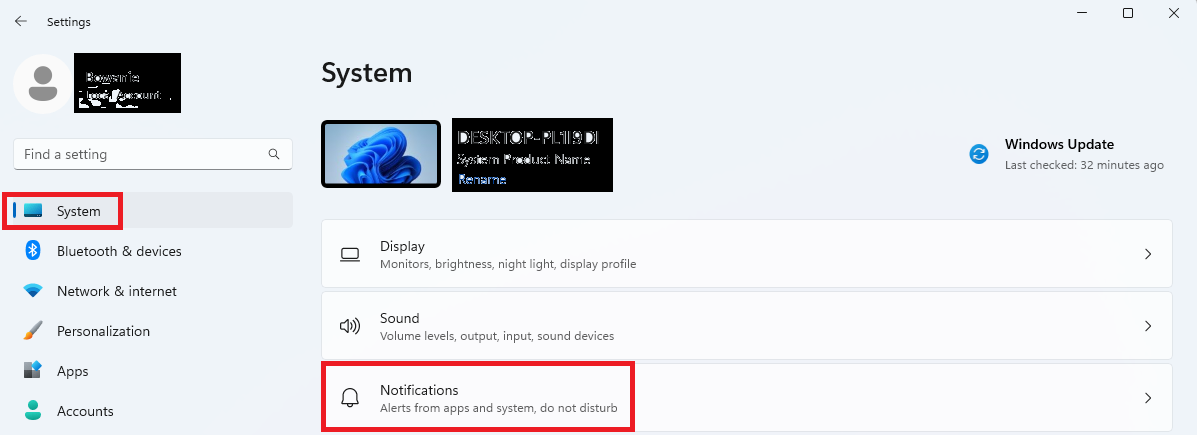 Stap 7: Kies terug via Systeem voor Notificaties.